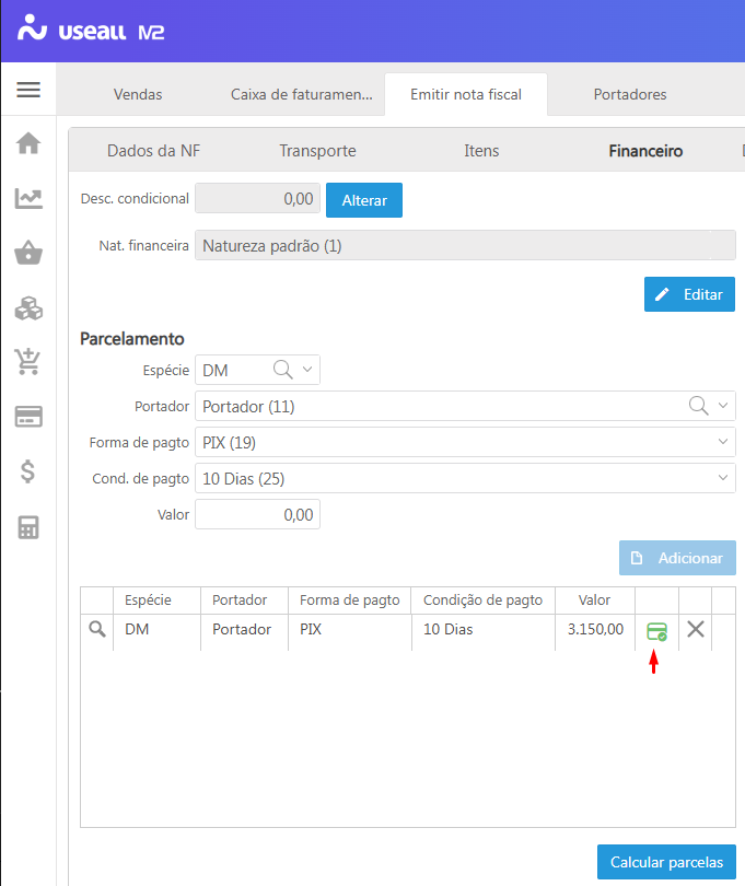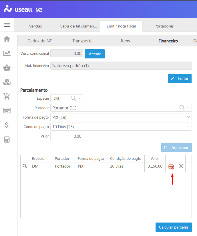 OBS.: Caso não preenchido, acusará mensagem de atenção, dizendo: Informe os dados de cartão/PIX para a forma de pagamento Cartão de débito (ou crédito, conforme estiver sendo utilizado como forma de pagamento).