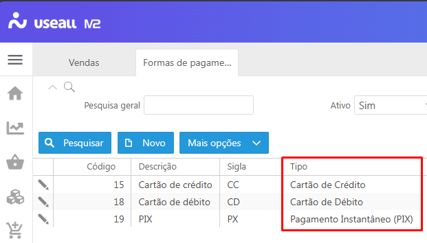 Quando for emitida uma nota fiscal, modelo 55, onde a forma de pagamento seja do tipo = "Cartão de crédito", "Cartão de débito" ou "Pagamento instantâneo (PIX)".